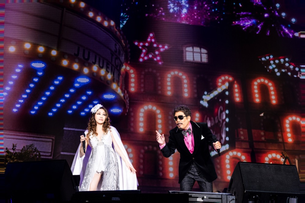小田氏ご来店の興奮も冷めやらぬ中、スナック定番メドレーへ。 ド派手な火柱が登場する「あゝ無情」、お馴染みの合いの手が巻き起こる「DESIRE-情熱-」は、これまでもスナックJUJUで歌われてきた曲達だが、東京ドーム店でしか体感できない、凄まじい盛り上がりを見せた。 その他、「嵐の素顔」、「淋しい熱帯魚」、「ミ・アモーレ」と、昭和を代表する名曲達がこれでもかとたたみかけられ、「今夜はまさに“狂乱の宴”なのだ」という事を、誰もが改めて肌で感じた事だろう。 アンコールでは、ママに代わってJUJUが登場。テレビ朝日系木曜ドラマ『グレイトギフト』の主題歌「一線」を初歌唱した後は、JUJUのヒットメドレーへ。
