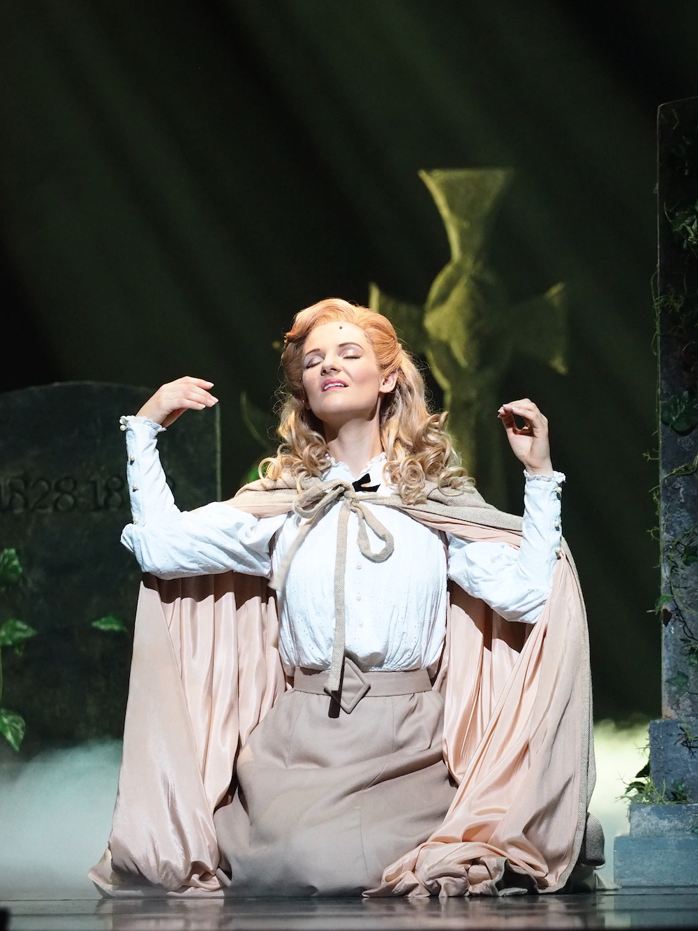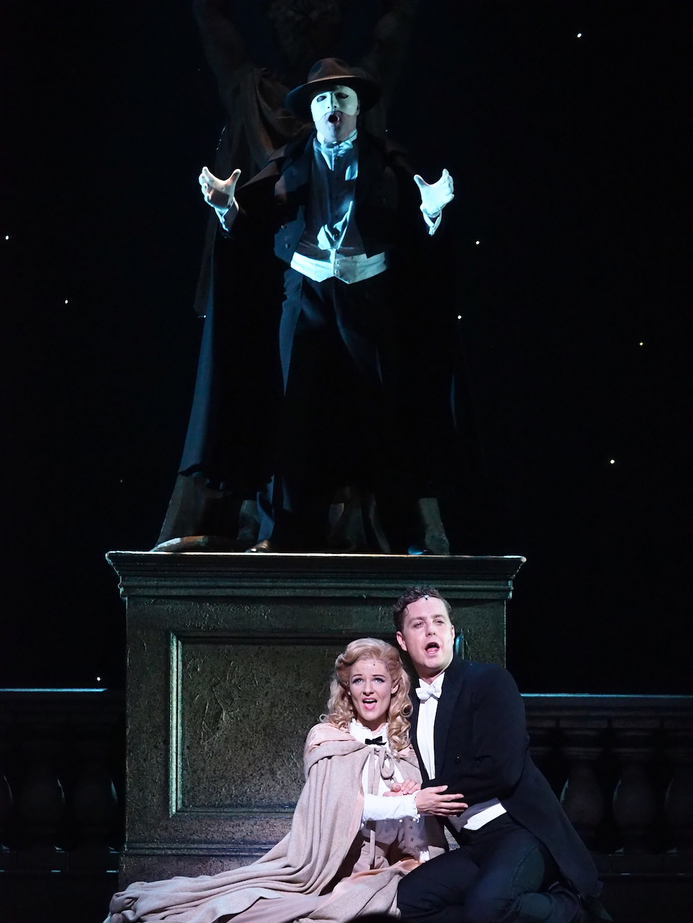 様々なオペラの有名アリアを用いた音楽は、心地よく私たちを酔わせてくれる。中でも、怪人役のジョン・オーウェン=ジョーンズの圧倒的な歌声が耳に残った。怪人の登場シーンで歌われる「高い高いところから」では、叙情的な高音で魅了。この歌声なら誰もが“音楽の天使”だと信じてしまうに違いない。また「制御できない運命」ではオペラのような華麗な三重唱で聞かせ、ラストの「我を見捨てず、ここに留まれ」ではクリスティーンへの切ない心情を迫力満点のロングトーンに乗せた。クリスティーン役のヘレン・パワーの美しいソプラノも見事だ。
