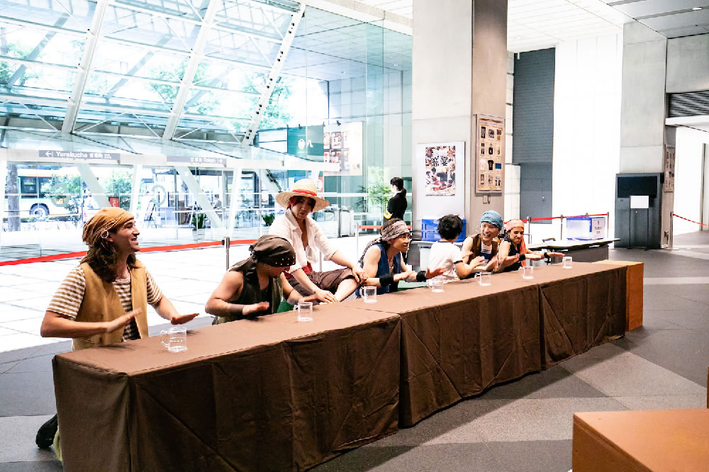 休憩時間にはロビーでキャストによるインターミッション・パフォーマンスが行われ、シャンクスと幼少期のルフィも登場。ロビーは人であふれかえったが、休憩時間もお客さんたちのテンションをさらに上げてくれる演出に、第2幕への期待もさらに高まる。