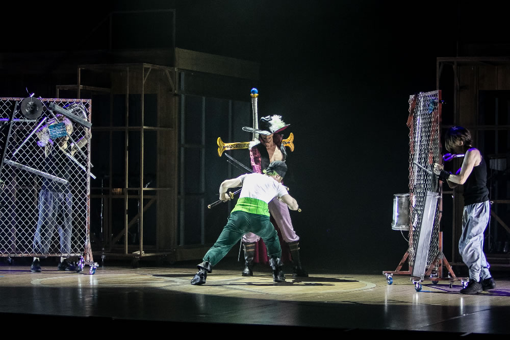 ルフィ役の松浦司、ゾロ役の福地教光、ウソップ役の森良平、サンジ役の高澤礁太、ナミ役の大北岬、そして幼少期のルフィ役の川口調くんの熱演も光る。 サンジはとくにアクロバティックな動きが多いし、ナミのバトンさばきには客席からなんどもどよめきがあがったほど。ルフィも作品から飛び出してきたような動きをするので、違和感なし!ここも注目すべきポイントだ。