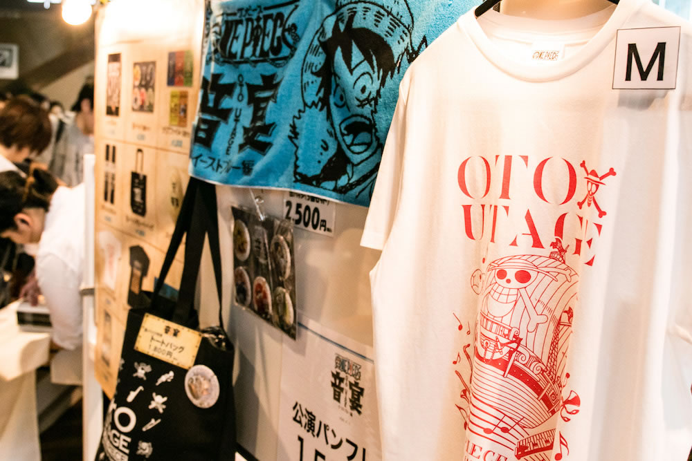 2Fへあがると音宴のパンフレットや会場限定のグッズが販売されている。 ちなみにグッズの売り子さんたちも麦わら帽子をかぶっているという細かいところまで演出されているので、始まる前から「ONE PIECE」の世界に入り込める。
