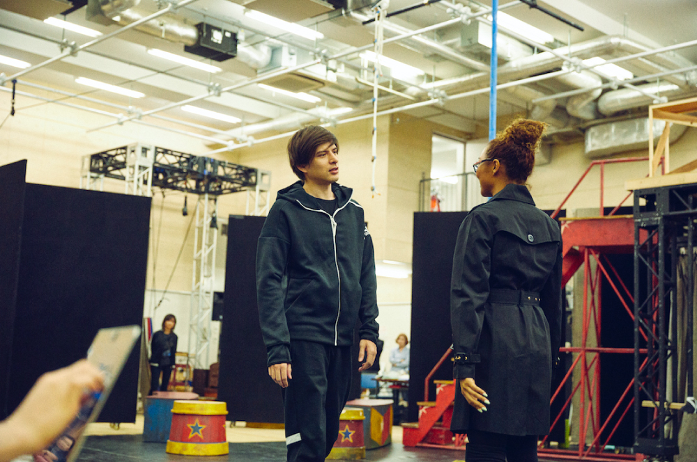 この日の稽古の最後には、オープニングナンバー「Magic To Do」が披露された。クリスタル演じるリーディングプレイヤーが中心となり、出演者全員で観客をマジカルな物語に誘う楽曲だ。キャストたちが立ち位置につくと、少し空気がぴりっとした。まだ稽古2日目、それほど数はこなしていないはずだ。パウルスが、「準備は万端?」と声をかけると、チャールズ役の今井が、「万端なはずないよ、まだほとんどやってないんだから(笑)」と、空気を和ませる。この曲のなかで、キャストたちが口ぐちに、観客に声をかける場面があるのだが、パウルスからは「(観客のなかから)一人を選んで、自分の言葉で話して」「上気せずに、クールに話しかけて」と指示が飛んでいた。