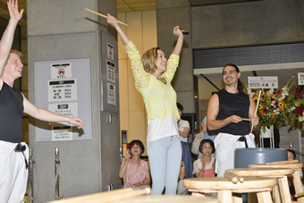 いよいよ東京:東京国際フォーラムホールCに上陸! 初日の幕開けをした、「ブラスト!」の会場よりレポート!! 舞台に組まれた東京バージョンのセットを前に、 早くパフォーマンスがしたいと興奮気味のキャストたち。 入念にウォーミングアップをする彼らの表情からは、 これから始まる約3週間の東京公演への意気込みが伝わってきた。 ![]() そしていよいよ東京公演初日開幕! オープニングの楽曲「ボレロ」が、静寂の中、石川直のスネアドラムからスタートする。 その正確に一定に繰り返されるリズムが、観客の期待を膨らませていく。 そこに金管楽器の美しいアンサンブル、 ティンパニやバスドラムなどのパーカッションが加わり、舞台上は一気に華やかに! 力強く迫力のある演奏・パフォーマンスは客席を包み込み、舞台と客席の一体感を創出した。 東京公演初日ということで、スペシャルサポーターのSHELLYが登場し、 パーカッションメンバーとコラボレーションパフォーマンスを行った。 緊張の面持ちで登場したSHELLYだったが、 カウベルで軽快なリズムを刻み、メンバーと息の合ったパフォーマンスで観客を盛り上げた。 大役を成し遂げたSHELLYは、終了後のインタビューで 「めちゃくちゃ緊張しましたね。練習してないみたいな、『やってみる?』でやっている感じに見えるのがすごい。あらためて尊敬しますね」と話した。 ![]() ![]() そしてインターミッションの興奮冷めやらぬうちに第2幕がスタート。 聞こえてきたこの曲は?! NHK連続テレビ小説で爆発的な大ヒット、 日本中から愛される「あまちゃん」メインテーマ曲の「ブラスト!」バージョン!! 個性溢れるキャスト達が、一輪車やスケボーに乗って登場したり、 相撲をとったり、フラフープをしたり、あの名曲を演奏しながら舞台を駆け回る! 客席は大きな手拍子と笑いに包まれ、二幕冒頭から舞台に惹き込まれてしまう。 これぞ「ブラスト!」のパワーというものを感じられる瞬間だ。 その後も様々なジャンルの楽曲が披露された後、 情熱的なラテン調の楽曲「マラゲーニャ」で舞台は終演を迎える。 最高潮の盛り上がりに大満足してロビーに出ると、何やら、楽しいサンバの音楽が… そう!キャストがお見送りしてくれる、ミート&グリート! サンバの音楽で存分に盛り上がった後は、握手やサインなどキャストと交流ができるのだ! 最後の最後まで一体感を感じて、思い切り楽しむことができる「ブラスト!」は 他には無い体験型のエンターテインメントといえるだろう! ![]() 2003年に初上演して、今年で9回目の日本公演となる。 初年度は全公演SOLDOUTという圧倒的人気を誇り、 翌年2004年から2009年まで日本での公演規模を拡大し続け、全国各地でブラストシリーズ旋風を巻き起こした。 その後、惜しまれつつ充電期間に入り、初来日から10年目となる2012年に全国各地公演で大成功をおさめた。 「ブラスト!」では、様々な色が音楽と振付け、鮮やかな照明、衣装、手具によって表現され、 観客を"emotional Jurney~感情の旅路~"へといざなう。 超絶技巧溢れるダイナミックなパフォーマンスは、観るものを虜にしてやまない。